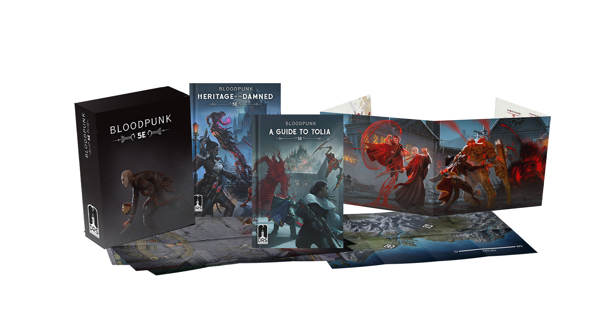 The Bloodpunk Complete Collection is an all in one box set for Dungeons and Dragons 5th Edition created by Dream Realm Storytellers, bringing the blood powered gothic punk world of Tolia to the table. Designed for players and Game Masters seeking a dark, immersive setting, the collection offers a cohesive and atmospheric Bloodpunk experience.